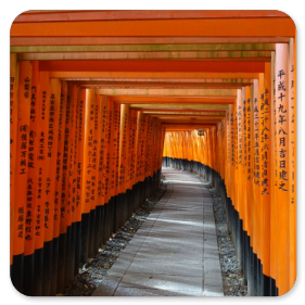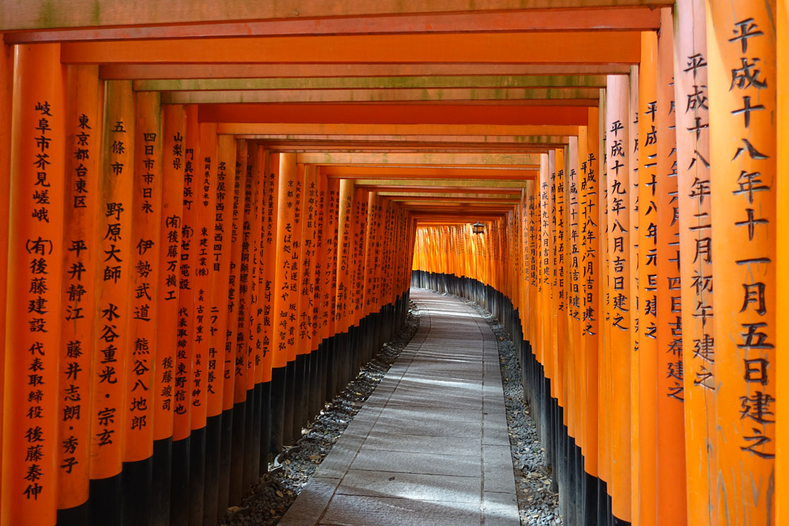 Millionen von Japanern besuchen in den ersten Neujahrswochen diesen Schrein und bitten um Glück, Erfolg und langes Leben. Die Spendenquote ist die zweithöchste in Japan nach dem Meiji-Schrein in Tokio. Auch wir befinden uns innerhalb einer großen Menschenmenge und sind froh, einmal einen Abschnitt ohne Touristen für ein Foto zu finden. Aber interessant ist die Anlage schon. und wir verstehen, warum so viele Leute durch die Tunnelgänge wandern.