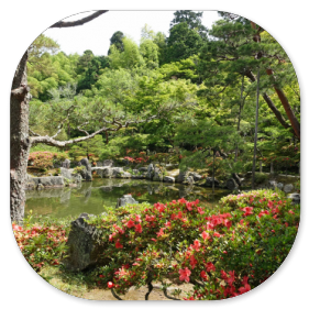 Andersartig ist allerdings die Anlage des Gartens und der Teiche. Im Gegensatz zu den immergrünen Zen-Gärten wurde hier nämlich Wert auf einen Garten gelegt, der durch die Laubfärbung in den verschiedenen Jahreszeiten jeweils anders aussieht.