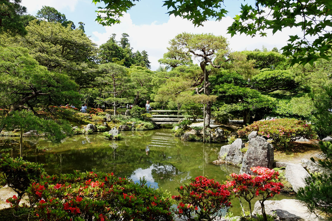 Besonders gut gefällt uns die Gartenanlage mit den vielen blühenden Iris, Seerosen, Azaleen und anderen Pflanzen. Der Spaziergang durch den Garten ist erholsam und abwechslungsreich, zumal es viele Steinbrücken und Überwege in dem Teich gibt.
