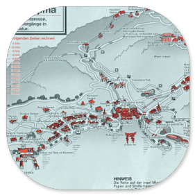 Wir haben drei Stunden Zeit, uns auf der Insel umzuschauen. Shin-itchi klärt uns über die zahmen japanischen Hirsche auf, die uns sehr klein erscheinen, beschreibt die einzelnen Sehenswürdigkeiten und verteilt ein deutsches Info-Blatt. Das gefällt uns sehr, denn so können wir uns gut orientieren. Hier eine kleine Diaschau mit unseren Beobachtungen: