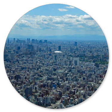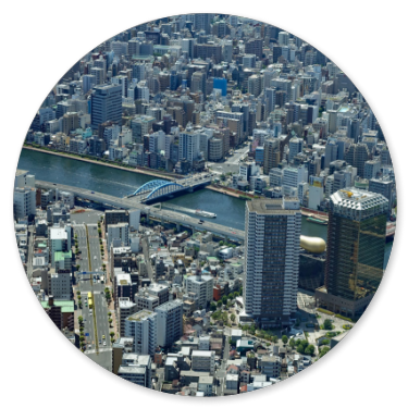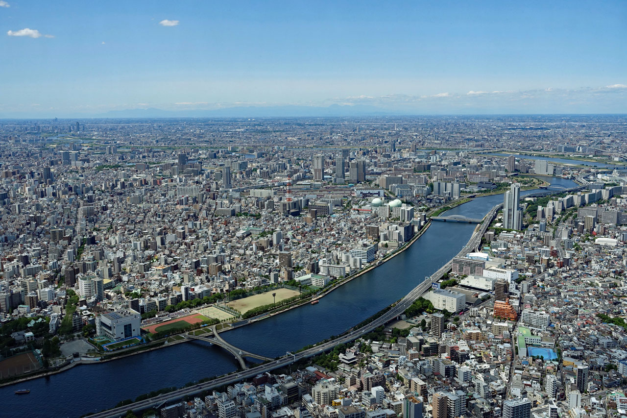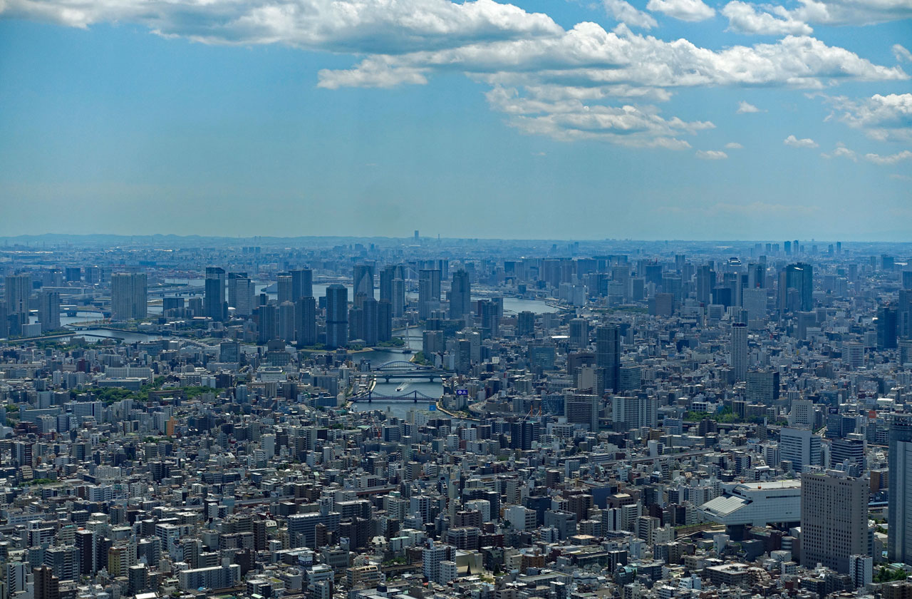 Als wir schließlich am Endpunkt und damit wieder an unserem Einsteiegpunkt angelangt sind, steigen wir aus und genehmigen uns erst einmal eine Pause mit einem Cappuccino. Der schlägt mit 8 € zu Buche. Immerhin noch etwas billiger als auf dem San Marco Platz in Venedig, wo wir 12 € bezahlt haben. Anschließend steigen wir in einen Bus der blauen Linie zum Tokyo Skytree. Die Tour ist interessanter von den Fotomotiven her und führt durch Stadtteile mit vielen Menschen. In Ueno ist zum Beispiel viel los und am Skytree natürlich auch.