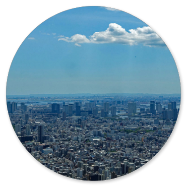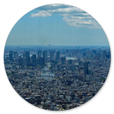Am Tower angekommen, finden wir das Ticket-Center im 4. Stock und stellen uns in die Priority Line for International Visitors. Das ist ein sehr gutes Angebot der Japaner , denn so kommen wir viel schneller an die Reihe und erwerben für 3000 Yen ein Ticket für die Plattform auf 350m Höhe. Die nächste Plattform auf 450m Höhe kostet 1000 Yen mehr, lohnt sich aber nicht zum Fotografieren, weil es in der Ferne zu dunstig ist. An klaren Tagen im Winter oder Frühjahr kann man den Fujiyama von oben sehen, heute aber nicht, berichtet uns ein Holländer, der schon oben war. Für internationale Besucher gibt es auch einen gesonderten Fahrstuhl, was uns sehr entgegen kommt, denn es steht schon eine ziemlich große Menschenmenge vor den Fahrstühlen.