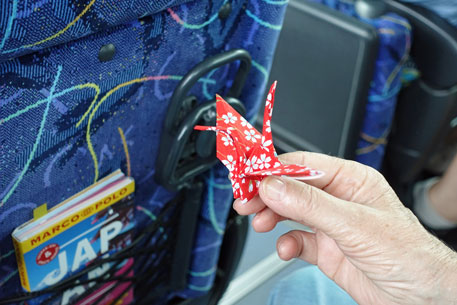 Der Service ist erstklassig, das Menü auch, aber halt gewöhnungsbedürftig. Ein bisschen nachteilig finde ich, dass sich der Sitz in der Liegeposition nicht ganz flach auf 180 Grad herunterklappen lässt. Richtig ausstrecken kann man sich nicht. Das ist schade, aber vielleicht reicht das für die kleinen Japaner.