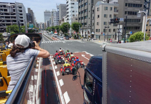 Der Hop on-Bus fährt um 10:10 Uhr los und wir haben zunächst die violette Linie gewählt, mit der wir 2 1/2 Stunden eine Rundfahrt machen. Am besten gefallen uns der Tokyo Tower, die Rainbow Bridge, Aqua City Odaiba und Ginza, wo ziemlich viel Betrieb auf den Straßen ist. Diese Punkte wollen wir uns für eine weitere Erkundung vornehmen.