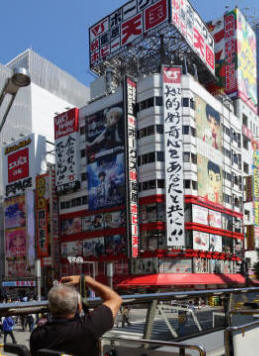 Uns fällt im Übrigen auf, dass die Japaner gar nicht so sehr die farbige Kleidung lieben, sondern dass fast alle irgendwie schwarz-weiß gekleidet sind. Farbige T-Shirts , Hemden oder Jaketts sieht man selten. Auch lässige Kleidung ist verpönt. Vielleicht sind alle, die hier so hektisch die Kreuzung überqueren, Angestellte, die Wert auf korrekte Kleidung legen. Das weiß man natürlich nicht, aber die Touristen kann man ganz gut von den Geschäftsleuten und Angestellten unterscheiden.