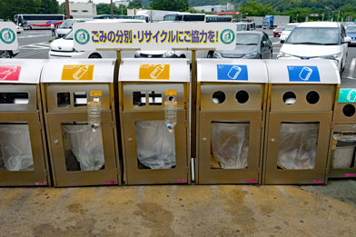 Da unser Abfahrtstermin auf 8:00 Uhr festgelegt wurde, sitzen wir schon beim Öffnungszeitpunkt des Restaurants um 6:30 Uhr beim Frühstück. Der Himmel ist bedeckt heute morgen, aber es ist warm. Die japanische Pizza von gestern hat durchschlagende Wirkung auf unsere Verdauung, aber das finden wir ganz positiv. Uns steht eine lange Fahrt bevor, denn auf dem Weg zu unserem Tagesziel Kyoto wollen wir Nara besuchen. Die Fahrt mit dem Bus über den Expressway ist eintönig und wir sind froh, dass wir unterwegs unter Anleitung von Shin-itchi einen Kranich aus Reispapier falten. Das ist schon eine Kunst und wir bekommen eine Hochachtung vor den japanischen Origami- Falttechniken. Unser Reiseführer versucht auch, uns die Grundregeln der japanischen Schriftzeichen zu erklären. Das ist an einigen Zeichen einsichtig, an anderen aber nicht. Nach zwei Stunden machen wir eine Pause und eine weitere um kurz vor Mittag an einer Raststätte bei Kobe. Das merken wir auch am typischen Angebot von Spezialitäten und Süßigkeiten im Supermarkt der Raststätte. Witzig ist ein "Dog Run" hier, eine eingezäunte Laufwiese, auf der zig Japaner herumlaufen, die einen Sonntagsausflug machen und mit ihren kunstvoll geschorenen Hunden hier herumlaufen.