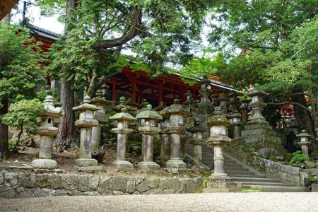 Der Kasuga-Taischa-Schrein wird auch der Schrein der 10 000 Laternen genannt. In Wirklichkeit sind es aber nur 3000. Er ist uralt und wurde bereits im Jahre 768 erbaut. Die Wege zu dem Schreine sind mit uralten Steinsäulen - wie auf dem rechten Bild - gesäumt. Daneben gibt es noch viele Laternen aus Bronze oder anderen Metallen. Auf vielen sind die typischen Wunschtäfelchen angebracht. Zweimal im Jahr werden alle Laternen angezündet und leuchten dann wunderschön am Abend. Das ist am 3. Februar und 14./15. August beim Mantoro Fest der Fall. Eigentlich soll es an die Zeit erinnern, als es noch keine elektrische Beleuchtung gab. Der Zeitpunkt des 3. Februar ist nämlich nach dem alten Mondkalender der Japaner der Beginn des Frühlings. Wir schauen in die Laternen hinein und finden in ihnen Wunschtäfelchen oder Papierblätter mit verschiedenen Wünschen. Nach dem Glauben der Shintoisten gehen nämlich die Wünscheam Tage des Lichterfestes in Erfüllung.
