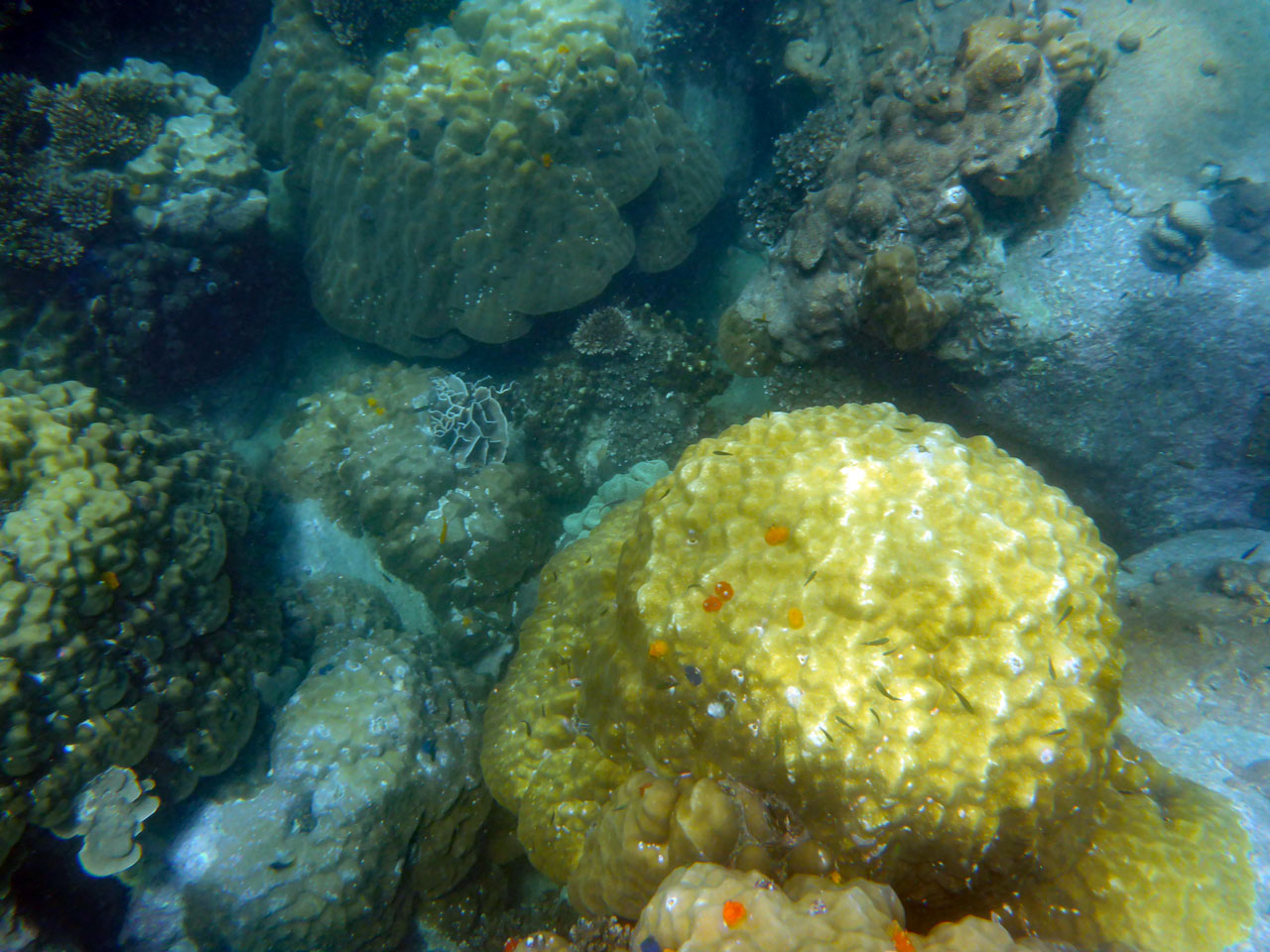 Das Wasser ist sehr unruhig und auch nicht klar. Viele dicke Granitblöcke liegen unter Wasser, die nicht besonders stark bewachsen sind. Die Sicht beträgt nicht mehr als 2-3 Meter. Einige bunte Fische wie Drückerfische und Falterfische kann ich beobachten. Die Korallenwelt aus weichen und harten Korallen ist ziemlich ärmlich, nur einige Seeanemonen, die sich im Wasser wiegen. An manchen Stellen ist die Sicht noch schlechter, weil unzählige Mikroorganismen das Wasser trüben. Von Riffhaien und Walhaien keine Spur. Als die Taucher herauskommen, frage ich sie, was sie gesehen haben. Mehr als einen Barracuda und eine Muräne auch nicht. Aber sie sprechen von einer Sichtweite von drei bis vier Metern.Hier einige Fotos von dem Tauchausflug: