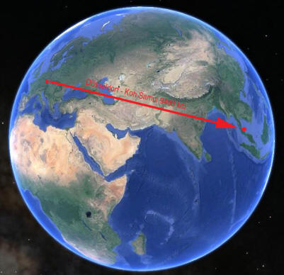 Elf Stunden Flugzeit benötigt man für die 9000 km von Frankfurt nach Bangkok und noch einmal 1 1/2 Stunden bis Koh Samui.Nach eingehendem Studium der Kataloge und der Beurteilungen vom Tripadvisor und Holidaycheck im Internet entschieden wir uns schließlich für das Buri Rasa Village in Koh Phangan und das Melati Beach Resort in Koh Samui. Beide Hotels buchten wir bei Meiers Weltreisen, weil die das günstigste Angebot hatten. Hinterher haben wir übrigens festgestellt, dass Neckermann noch günstiger gewesen wäre.