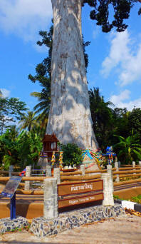 Haad Rin am südlichen Ende lassen wir weg, weil wir nicht zur Zeit des Vollmonds da sind und infolgedessen auch keine Fullmoon-Party am Strand stattfindet. Ansonsten hätten wir uns das schon gern angeschaut.Den ersten Halt machen wir am 400 Jahre alten Yang Na Baum, der als ältester Baum der Insel gilt. Mit seinen 40 Metern und einem Stammdurchmesser von 1,5 m soll er nach der Legende das Dorf so lange beschützen, wie er nicht gefällt wird. Außerdem verwendet man das flüssige Harz zum Dichten von Körben und Booten.