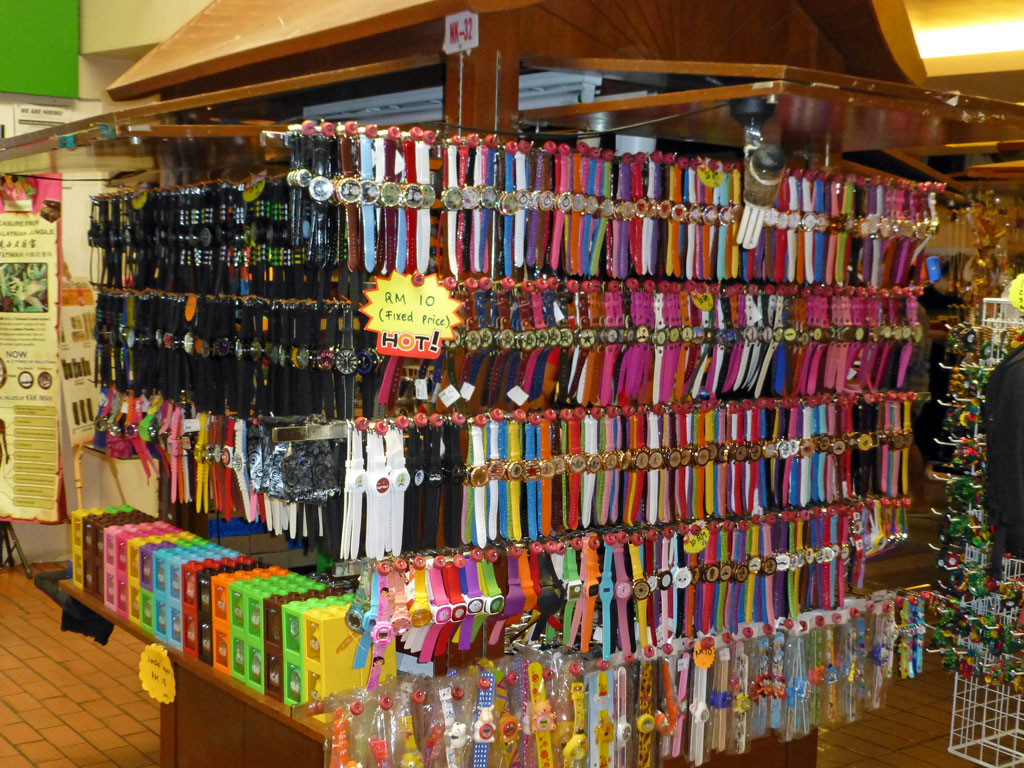 Abends wandern wir zu Fuß zum Pavilion-Shopping Center und entdecken diesmal auch die Fußgängerbrücke, die uns den Weg um 20 Minuten verkürzt. Überall findet man Pubs und Restaurants, es ist richtig viel los, die Leute sind in Kauf- und Esslaune. Das Essen ist verhältnismäßig preiswert, von 2,50 € bis 25 € reicht die Preisspanne für ein Mittagessen. Es ist nicht zu scharf und lecker. Schweinefleisch gibt es nirgendwo, auch nicht bei uns im Hotel; in den Feinkostläden in den Shopping-Centern wird allerdings alles angeboten: von der italienischen Fenchelsalami bis zum französischen Roquefort bleibt kein Wunsch offen. Die Preise sind hoch - auch beim Obst, fast wie bei uns. Interessant sind auch die Menschen um uns herum: viele Touristen mit Fotoapparaten, aber kaum Europäer, fast alles Asiaten. Wer eine helle Haut hat, ist meist Australier. Auffallend viele kleine Typen, entsprechend sind auch die Kleidergrößen in den Geschäften. Als Europäer kann man hier keine Klamotten kaufen, denn die entsprechenden Kleidergrößen sind vielfach nicht vorhanden. T-Shirts kosten nur 2,25 €, die gibt es in allen Größen, weil sie auch für Touristen gemacht sind. Mehr als T-Shirts, einfache Badelatschen und leichte Hosen braucht man hier eigentlich nicht.