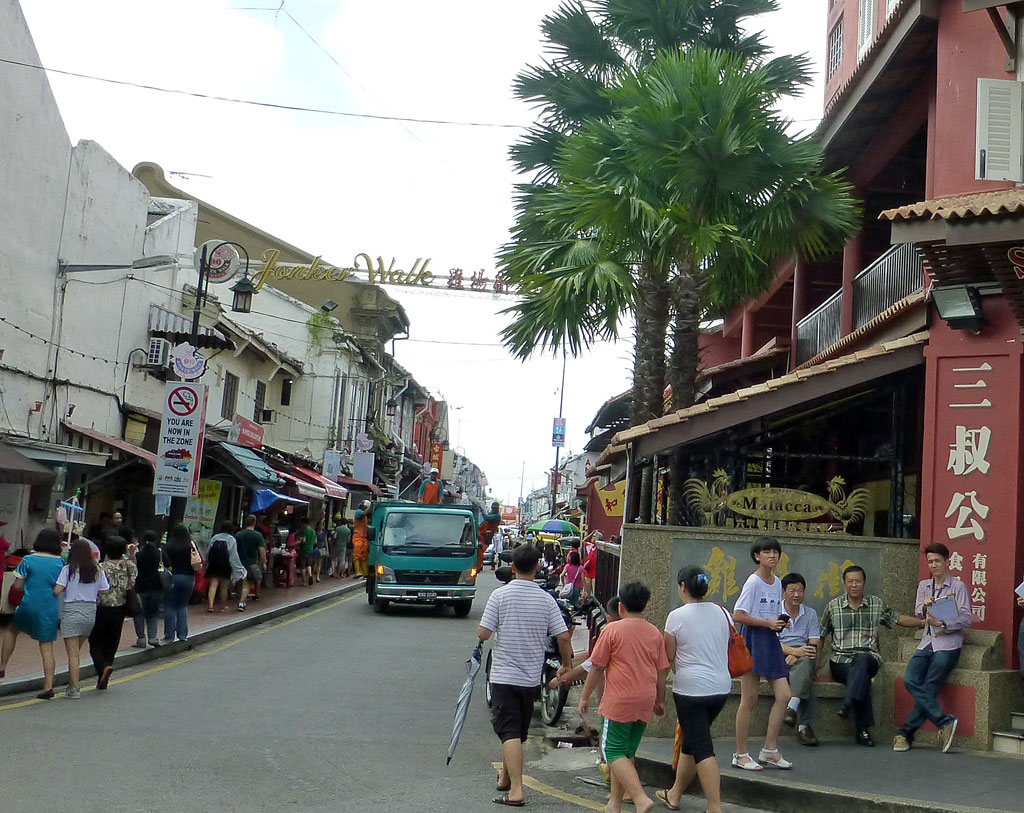 über die Jonker-Street, auf den schmalen Nebenstraßen ist nichts los
