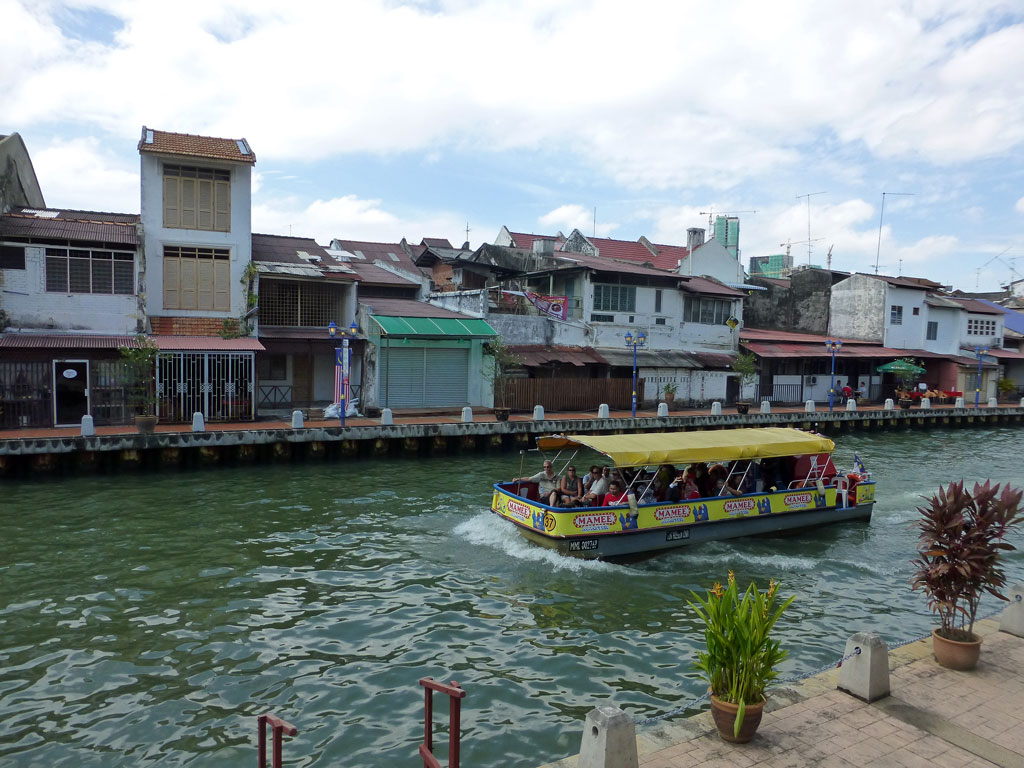 Andere haben Spaß an einer Bootsfahrt über den stinkenden Malakka River, den man