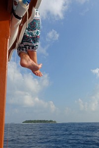 Gegen 14:30 Uhr fahren wir ab und sind eine halbe Stunde später an Amillafushi vorbei kurz vor der kleinen Insel Kihaadhoo, auf der etwa 300 einheimische Maldiver wohnen.