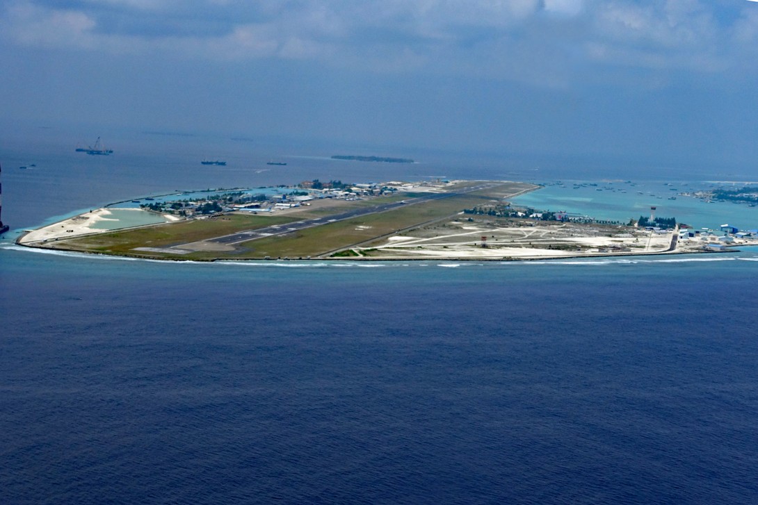 Eine Stunde später liegt der Flughafen von Male unter uns und wir landen im Wasserflugzeug - Terminal. Das liegt auf rechten Seite des nachfolgenden Bildes, wo auch der Tower zu sehen ist.