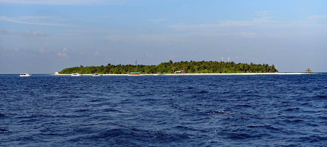 Bei der Rückfahrt zu unserer Insel erkennen wir jetzt auch von weitem Reethi Beach und können Fonimagoodhool von den anderen Inseln unterscheiden.
