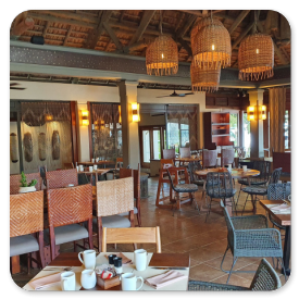 Mit dieser Erkenntnis fahren wir zurück nach Bel Ombre, wo es stark geregnet hat in der Zwischenzeit. Alle Sitzkissen an der Strandbar sind stark durchnässt und es sitzt keiner mehr dort. Unseren verspäteten Happy Hour Drink nehmen wir in der Hauptbar. Beim Abendessen sind wir nur noch zu zweit, weil Doris abgereist ist.