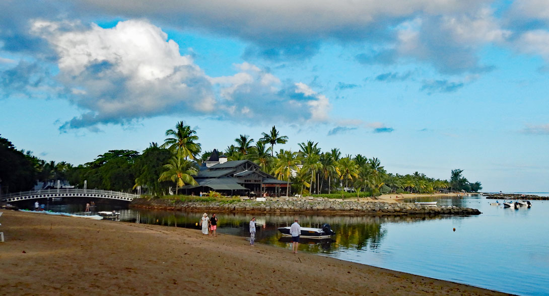 Mir scheint es allerdings so, dass zur Zeit in dem Outrigger Resort nichts los ist, denn die meisten Villen am Strand sind im Augenblick unbewohnt und nur wenige Gäste bewegen sich im Innern der Anlage. Hier zwei Fotos vom Strand davor: