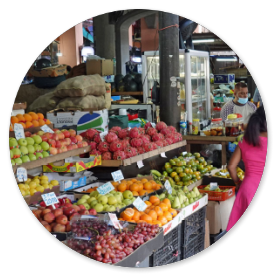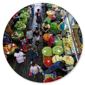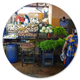 In den umliegenden Straßen geht es sehr geschäftig zu. Hier blüht der Handel mit lautstarken Verkäufern und Sonderangeboten. Besonders die Frauen stürzen sich auf die billigen Textilien, die in den kleinen Läden mit den Plagiaten angeboten werden. Ein kleines Video zeigt einen Eindruck davon: