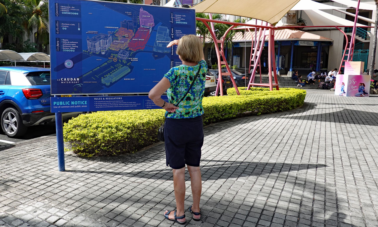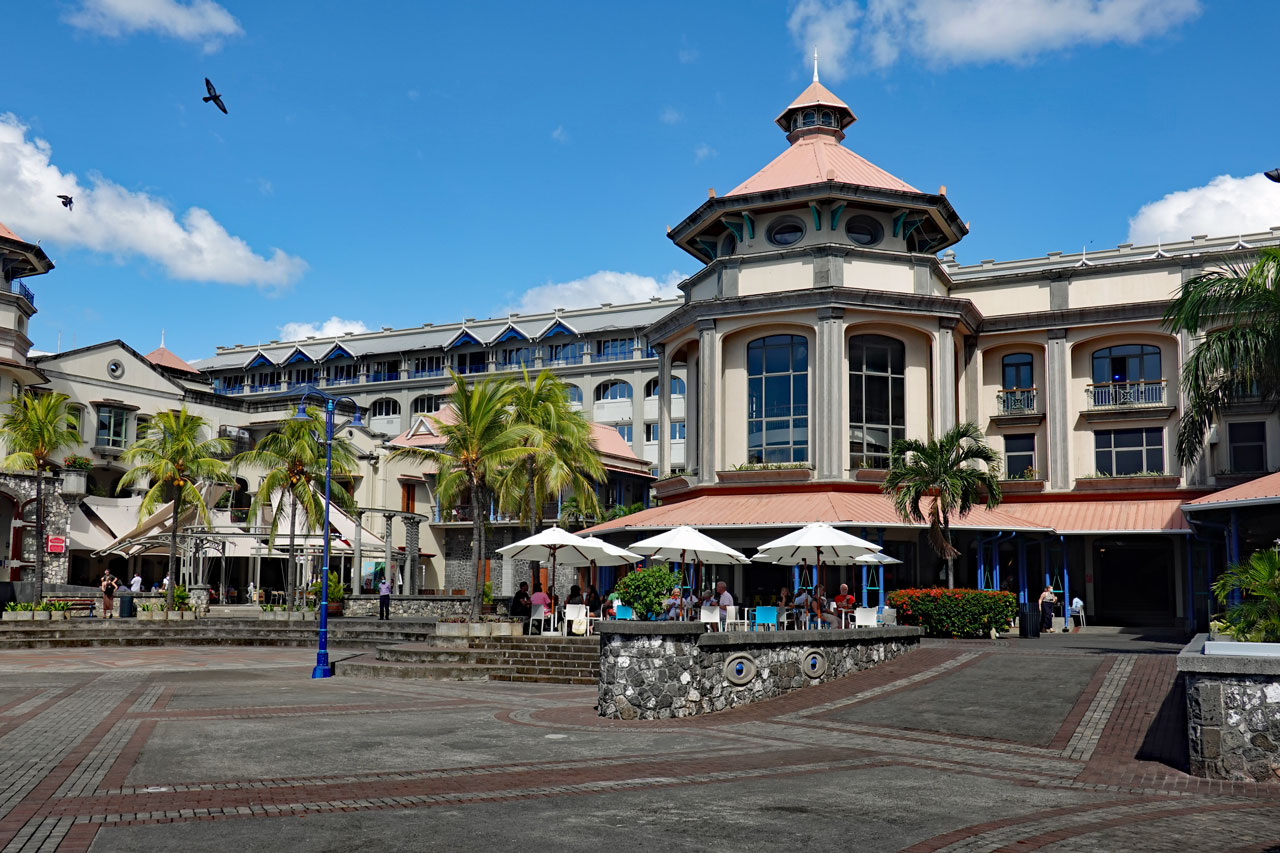 Anschließend setzt uns Sharif an der Caudan Waterfront ab, das ist ein großes Einkaufs- und Veranstaltungszentrum, das es bei unserem letzten Besuch vor 20 Jahren noch nicht gab. Damals gab es auch noch keine Metro, die hierhin fährt.