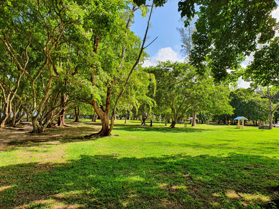 Der Beachpark ist ziemlich verlassen, weil ja durch das Verbot der Regierung kein Grillen und Campen erlaubt ist. Eigentlich wollen wir mal hin, aber Sharif drängt uns zur Weiterfahrt, denn wenn wir noch zum Botanischen Garten Pamplemousses wollten, müssten wir uns beeilen, weil wir sonst nicht von 19:00 Uhr zurück in Bel Ombre sein würden.
