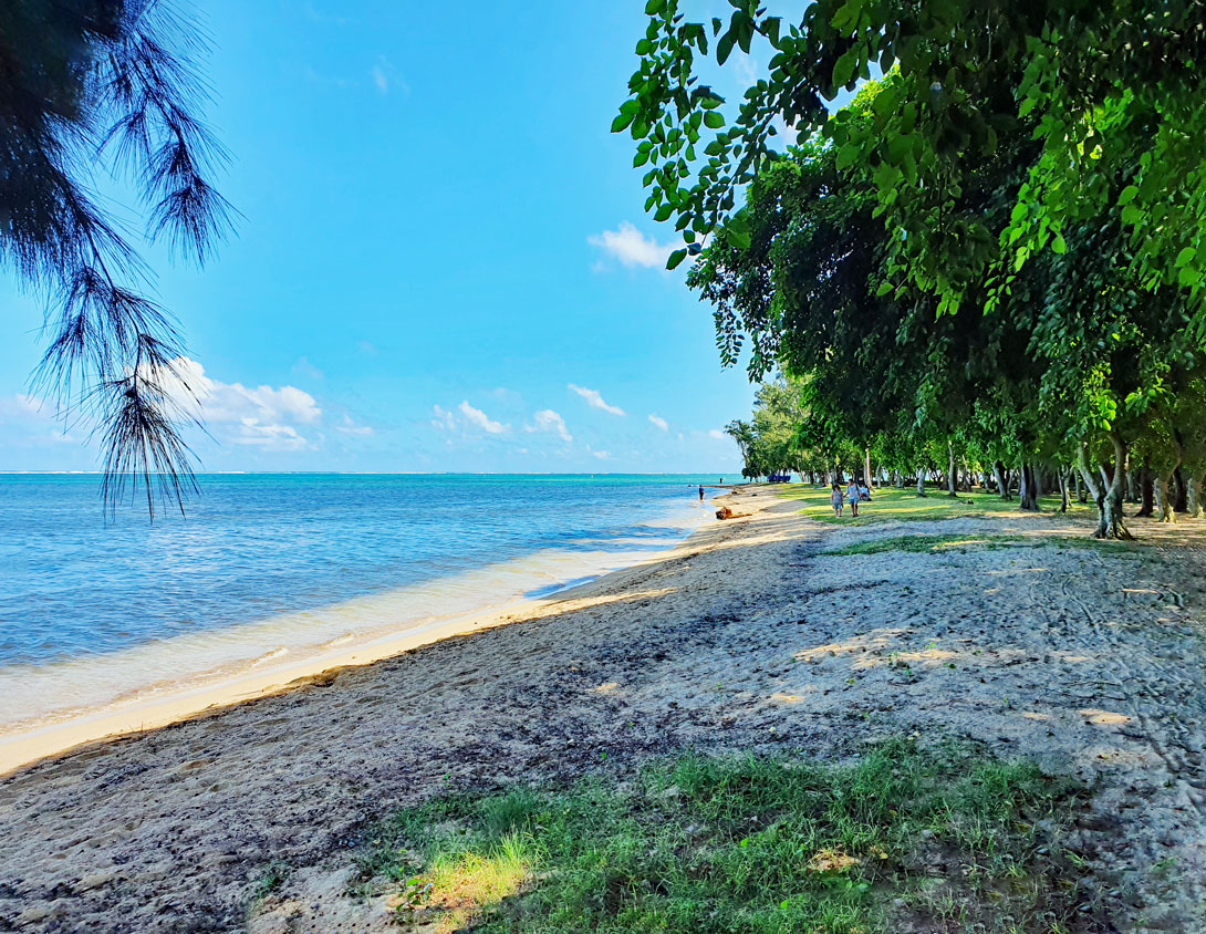 Dabei kommen wir zunächst an dem großen öffentlichen Strand von Mont Choisy vorbei. Das Bild von der offiziellen Webseite www.mauritiusisland.com zeigt den kilometerlangen Strand mit seinen typischen Casuarina-Bäumen:
