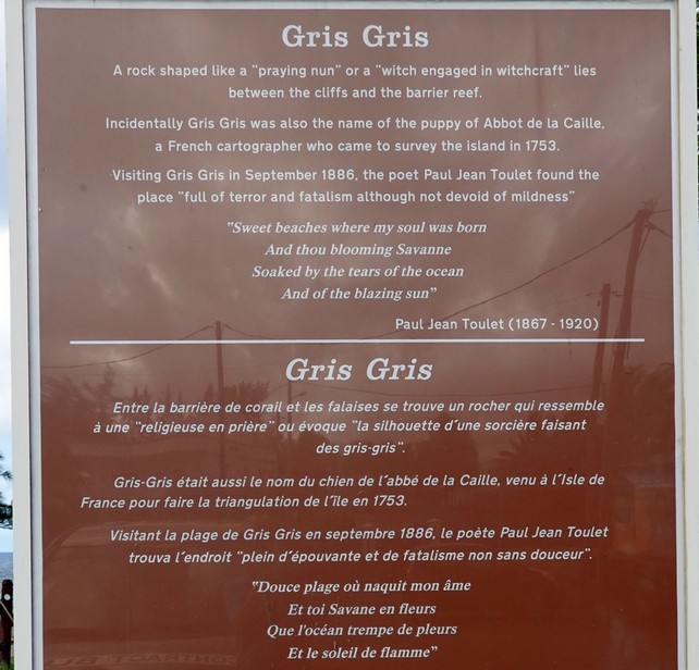 Dieser Felsen hat schon eine interessante Geschichte: Nach der Entdeckung der Insel durch die Portugiesen im 16. Jhdt. hatten diese hier nur einen Stützpunkt für die Versorgung der Schiffe mit frischem Wasser und Nahrungsmitteln angelegt. Eine Kolonie gründeten sie nicht. Das machten dann später die Holländer, die 1598 hier die erste Siedlung errichteten. Sie nannten die Insel "Prinz Maurits von Nassau", sodass heute noch der Name Mauritius darauf zurückzuführen ist. Für die Arbeit auf den Zuckerrohrplantagen hatte die holländische Ostindien-Company schon im Jahre 1639 Sklaven aus Madagaskar nach Mauritius geholt. Die Holländer exportierten von hier aus hauptsächlich Ebenholz, verließen aber 1710 die Insel. Danach besetzten die Franzosen die Insel und benutzten Port Louis als Flottenstützpunkt. In dieser Zeit wurden viele Sklaven aus Afrika und Madagaskar auf die Insel geholt, um uf den Zuckerrohrplantagen zu arbeiten. 1776 lebten laut Volkszählung schon 33.536 Menschen auf der Insel, wobei der größte Teil (etwa 85 %) davon Sklaven waren, während nur etwa 6000 Menschen europäischer Abstammung waren.
