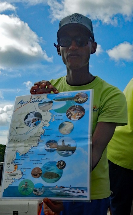 Wir werden zusammen mit einem belgischen Pärchen, zwei Engländerinnen und und einem deutschen Paar aus dem Riu Le Morne einem Speedboot der Firma Aqua & Soleil zugewiesen. .