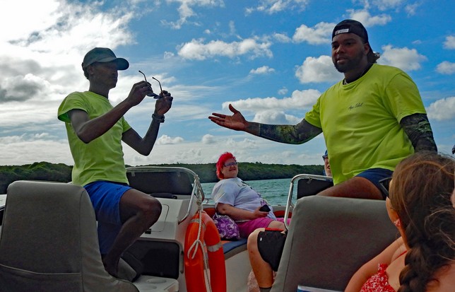 Ein wenig nachdenklich wird man schon bei der Betrachtung der Skulpturen. Ein Stück weiter nördlich halten wir an der Stelle, wo die Wasserflugzeuge zu den Inselrundflügen starten. Für 115 € können Sie 15 Minuten fliegen, aber nicht viel sehen. Da lohnt sich schon ein Flug von 40 Minuten für 280 € oder mehr, um beispielsweise die schönen Strände oder auch den berühmten Unterwasserfall aus der Luft zu sehen. Buchen können Sie den Flug bei Lagoon Flight.