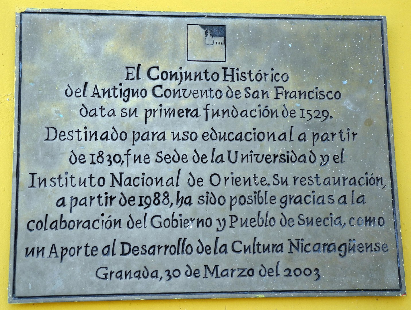 In den ziemlich zerfallenen Räumen finden wir an der Wand zwischen den beiden Fenstern noch ein Bild mit dem Text der Nationalhymne Nicaraguas: