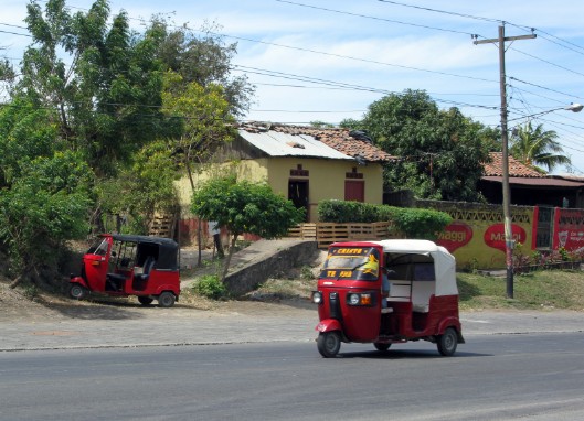 Die zweispurige Panamericana führt nach Norden auf die Hauptstadt Managua zu. Unterwegs sieht man im Gegensatz zu Costa Rica wesentlich mehr Pferdefuhrwerke, Eselskarren und Tuktuks. Die Straße ist kein Highway durch das Land, sondern lediglich eine wichtige Verbindungsstraße für die Landbevölkerung. Jetzt ärgert es mich besonders, dass meine kleine Lumix FT 35 kaputt gegangen ist, denn die Canon Powershot, die ich noch mit habe, ist zu langsam für Schnappschüsse aus dem Auto. Wenn ich auf den Auslöser drücke, ist schon alles vorbei oder die Bilder werden unscharf. Und die andere Lumix, die ich mit habe und immer als Unterwasserkamera benutze, liefert seit Los Cabos nur noch milchige Bilder. Sie ist ebenfalls hinüber. Es ist deshalb so ärgerlich, weil sich hier in Nicaragua viele Schnappschüsse aus dem Auto anbieten.