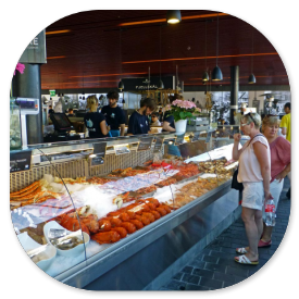 dem Fischmarkt sieht alles sehr appetitlich aus und man bekommt