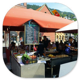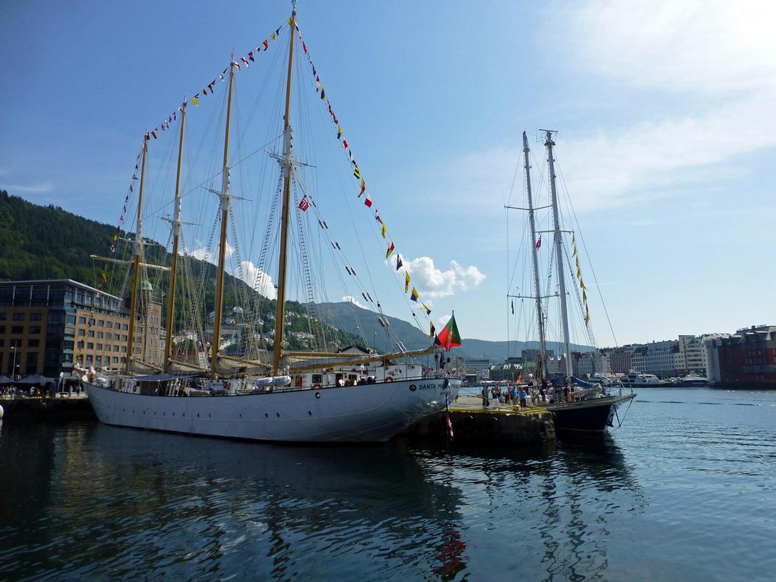Im Übrigen rüstet sich Bergen für die nächsten vier Tage, weil hier 70 große Segelschiffe zu einer Regatta ähnlich der Kieler Woche erwartet werden. Zwei Viermaster liegen schon im Hafen. Das ist natürlich eine tolle Kulisse.