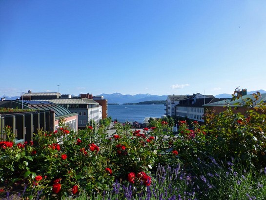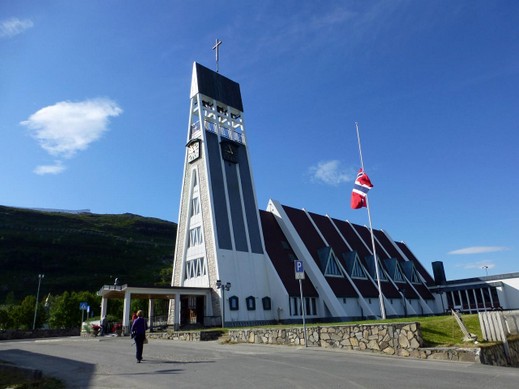 Im Zentrum ist die Kirche mit den dreieckigen Formen sehr interessant, die ein Architekt aus Oslo entworfen hat. Im Innern der Kirche findet man viele dreieckige Formen in den bunten Glasfenstern wieder. Der Prospekt, der in der Kirche auch in deutscher Sprache ausliegt, erklärt, dass sich der Architekt durch die Trockengestelle für die Fische inspirieren ließ, die man überall entlang der norwegischen Küste findet. Außerdem ist das Dreieck ein Symbol für die heilige Dreifaltigkeit.