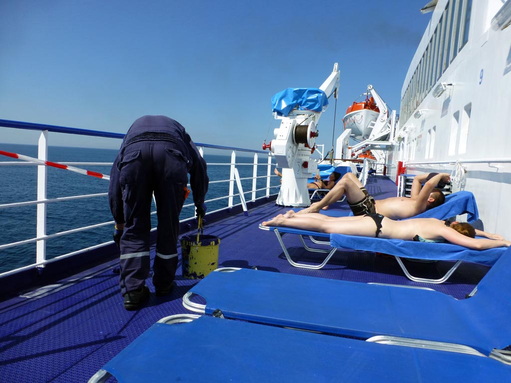 Ärgerlich ist, dass überall weiter gestrichen wird, auch wenn die Gäste des Schiffes sich auf dem Deck sonnen. Sobald man in irgendeinem Hafen liegt, wird irgendwo gestrichen. Das könnte doch erledigt werden, wenn keine Passagiere auf dem Schiff sind.