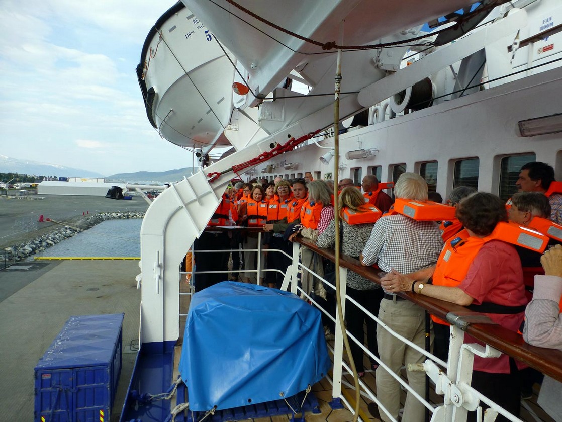 Vor dem Abendessen ist allerdings um 17:15 Uhr die obligatorische Seenotrettungsübung für alle zu absolvieren.