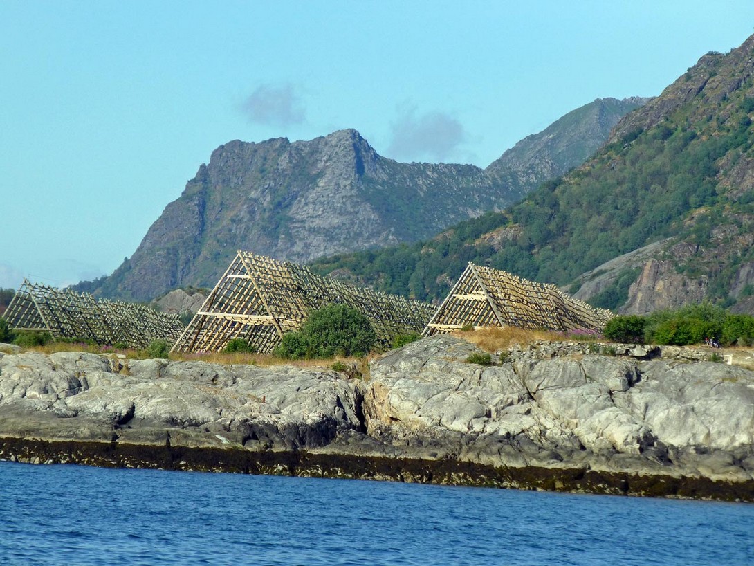 Die haushohen Gestelle stehen rundum die Stadt und sind jetzt aber leer. Während der Sommermonate werden stattdessen Lachse mit der Angel gefangen. Wie überall in den nordischen Ländern werden die Wildlachse in Aufzuchtstationen als Millionen von kleinen Lachsen in die Freiheit entlassen und kehren nach einigen Jahren als fette Beute der Fischer wieder zurück. In den Fjorden befinden sich deshalb große Becken, in denen die kleinen Lachse gefüttert werden.