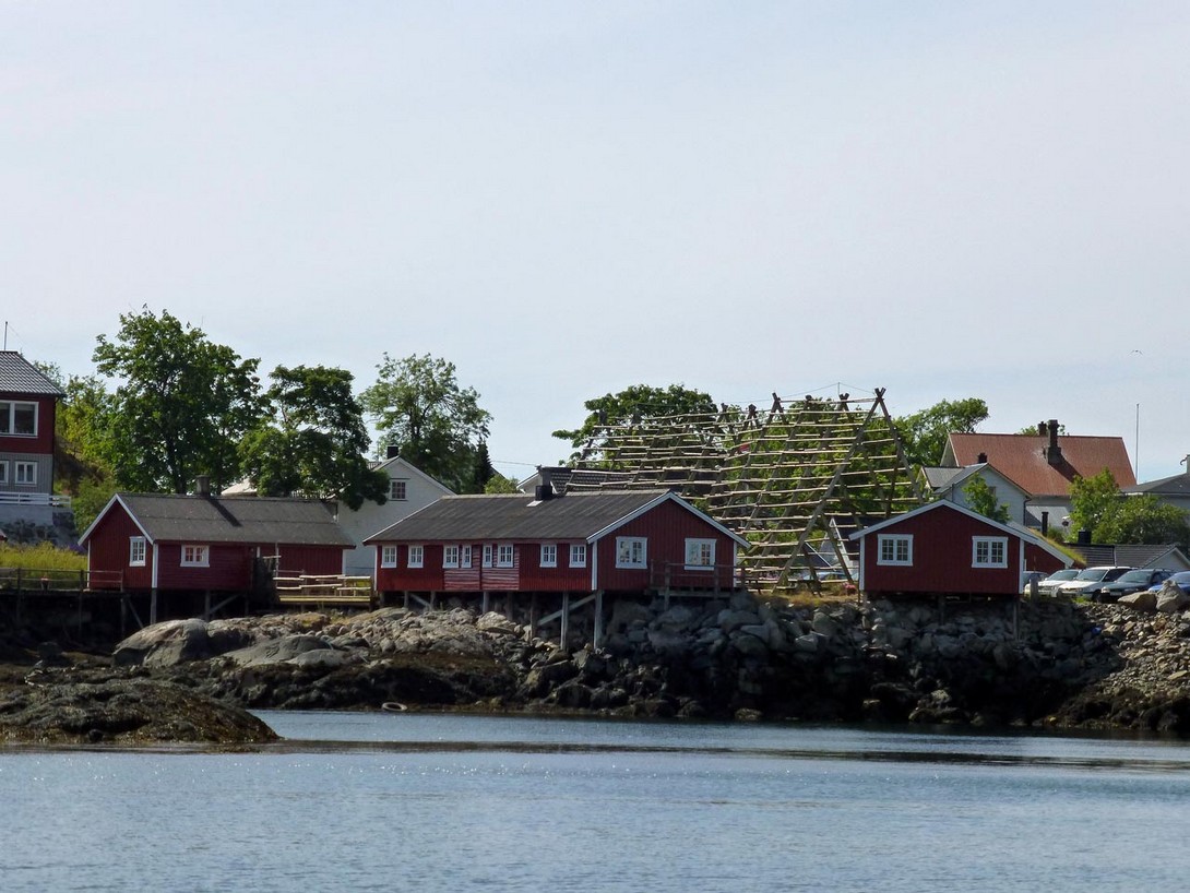 Am Nachmittag schauen wir uns die alten Fischerhäuser mit den Trockengestellen an und erfahren, dass Dorsch und Kabeljau die gleiche Sorte sind. In einige der ärmlichen Fischerhütten kann man auch hineinschauen. Unsere nette Reiseleiterin erklärt uns die Trockengestelle auf der Insel Svinøya. Hier lebten die Fischer während der Wintersaison in einfachen Fischerhütten auf Pfählen und trockneten die gefangenen Dorsche auf riesigen spitzförmigen Gestellen, um sie dann später als Stockfisch weltweit zu exportieren.