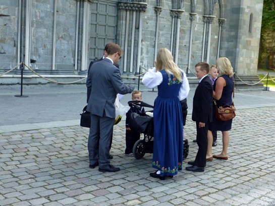 Irgendwie haben wir den Eindruck, dass Norwegen tatsächlich in der Mode der 50er Jahre stehen geblieben zu sein scheint. Das zeigen sogar die Schaufenster der Möbelgeschäfte mit Nierentischen und Plüschsofas. Wir können es gar nicht glauben. Es ist halt eine andere Welt: Es gibt viele Geschäfte mit Wolle, Strickmoden und Trachten. Wahrscheinlich haben alle Mütter und Großmütter in den dunklen Wintermonaten viel Zeit zum Häkeln und Stricken. Dabei müssen sie doch dafür sorgen, dass die Kinder passend gezeugt und zur Geburt und zur Kita angemeldet werden.