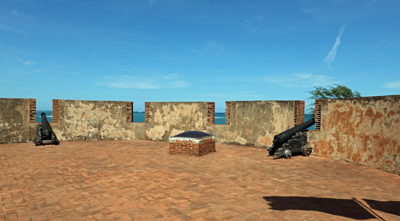 Ob die alte Burg aus dem Mittelalter einen Ausflug wert ist, weiß ich nicht. Aber wir wollen sie besuchen und fahren den Malecon entlang, das ist eine anderthalb Kilometer lange Uferstraße in Puerto Plata, die von vielen Restaurants, Discos, Bars und anderen Vergnügungsstätten gesäumt wird. Jetzt zu Zeiten der Pandemie ist hier nichts los und auch der Ausblick auf die Strandabschnitte ist trostlos. Die Festung Fortaleza San Felipe liegt an der Spitze zur Hafeneinfahrt und war im 16. Jahrhundert dazu gedacht, Seeräuber und Feinde abzuwehren. Da von hier aus reichlich Gold und Silber verschifft wurde (der Hafen heißt nicht umsonst Puerto Plata), waren die Holländer und Franzosen daran interessiert, dieses Gebiet den Spaniern abzunehmen. Später wurde die Festung nur noch als Gefängnis genutzt.