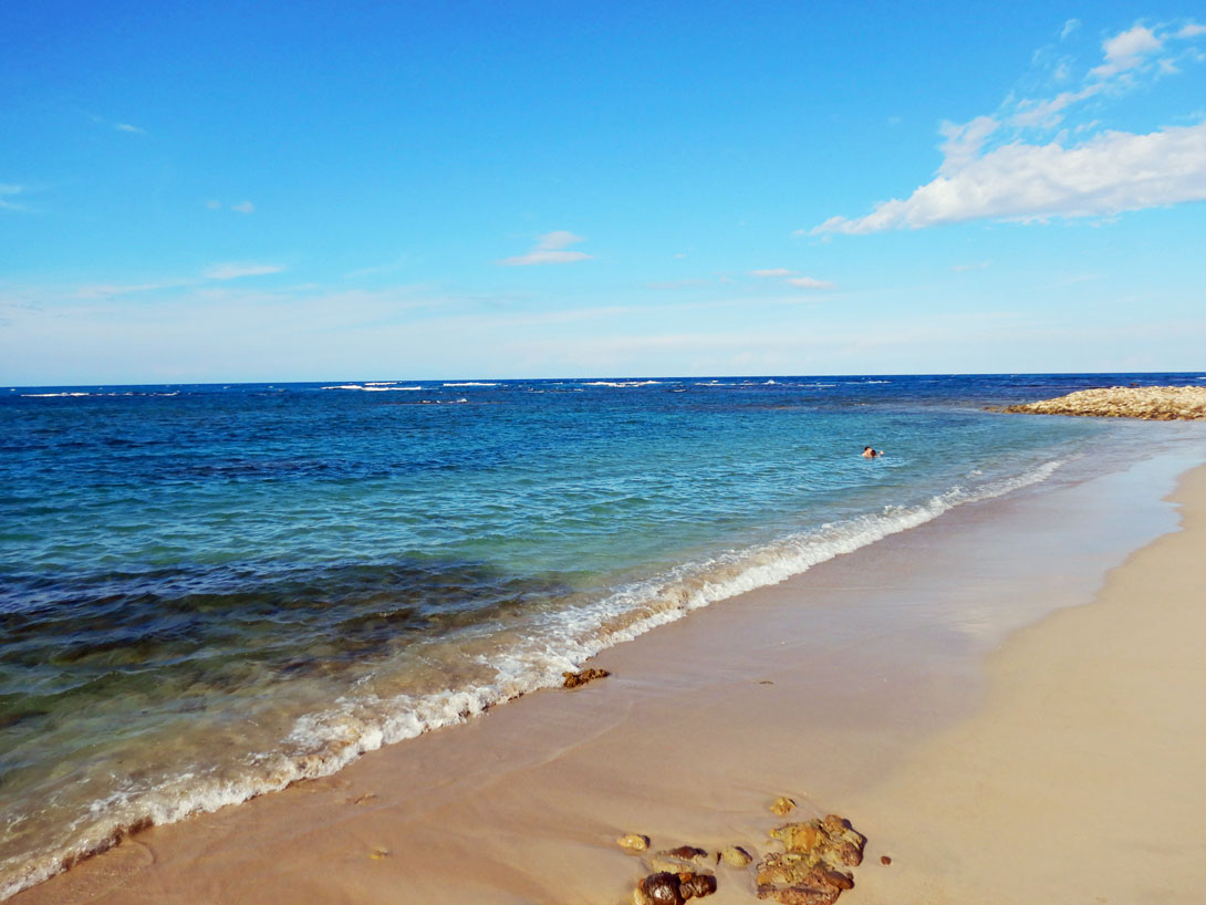 In dem Dorf ist ziemlich viel los, weil davor ein ganz ordentlicher Badestrand ist, an dem man viele einheimische Familien mit Kindern baden sieht. Hinter dem Dorf folgt das Blue Jack Tar Hotel und das nördliche Ende eines Golfplatzes. Alles ist sehr gepflegt, aber es ist nichts los. Auch dieses Hotel war fast ein Jahr lang geschlossen und es ist gerade vor zwei Wochen wieder geöffnet worden. Hier eine kleine Fotostrecke von den Hotels und den davor liegenden Stränden: