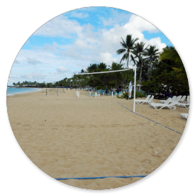 Der Betrieb hält sich beim Frühstück in Grenzen, weil wir schon früh um 7:30 Uhr im Restaurant sind. Das Wetter ist wieder ein Traum: wolkenloser Himmel bei 32°C und leichtem Wind. Wir genießen den Tag auf der Bali-Liege und halten uns von dem Strandbetrieb und besonders vom Pool fern. Allerdings würde wahrscheinlich jungen Menschen jetzt das Hotel besser gefallen. Ich sprach mit einem jüngeren Deutschen, dem alles sehr langweilig erschien, weil ja nichts los wäre. Sämtliche Aktivitäten wären geschlossen: Kein Surfen, kein Kanufahren, kein Banana-Boat, kein Segeln, kein Kite-Surfen, kein Paddling. Lediglich "Moskito", der unermüdliche Animateur würde mit seinem Team und lautstarker Musik die Gäste zum Tanzen, zu Aerobic und Wassergymnastik animieren. Er würde sich auf die Wochenenden mit den vielen Dominikanern freuen, weil sich dann genügend Leute zum Volleyball oder Boule am Strand fänden. Und mit der Disco wäre das genauso. Nur am Wochenende gäbe es abends eine Theaterveranstaltung oder einen Disco-Abend. Er wäre hierhin gekommen, um etwas zu erleben. Und jetzt wären so wenige Leute hier, dass nichts los wäre.