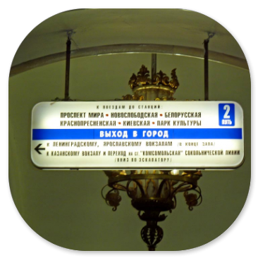 Wir stiegen nämlich in die Linie 2 statt in die Linie 7, weil ich glaubte, mit meinen Russischkenntnissen schnell die Endstation zu erkennen, die wir erreichen mussten, um in unser Hotel zu kommen. Das war die Station Poleschaewskaja. Stattdessen wählte ich in der Eile den gerade einfahrenden Zug Nr. 2 zur Station Proletarskaja. Beides sah im Russischen ziemlich ähnlich aus. Alles ging ziemlich schnell, die Tür klappte zu - und ich saß allein in der U-Bahn, während Inge, Hans und Ute hilflos auf dem Bahnsteig standen und mir nachstarrten. Ich hob also noch schnell vier Finger zum Zeichen und sie verstanden: Nach 4 Stationen aussteigen. Das klappte auch und wir trafen uns im Südosten von Moskau wieder statt im Nordwesten. Es war die falsche Linie gewesen. Wir fuhren also alle zum Ausgangspunkt zurück und probierten alles in Ruhe noch einmal von vorn. So lernt man schnell, dass man sehr sorgfältig die einzelnen Buchstaben zu einem Wort zusammensetzen muss, bevor man sich entschließt, in einen Zug einzusteigen.