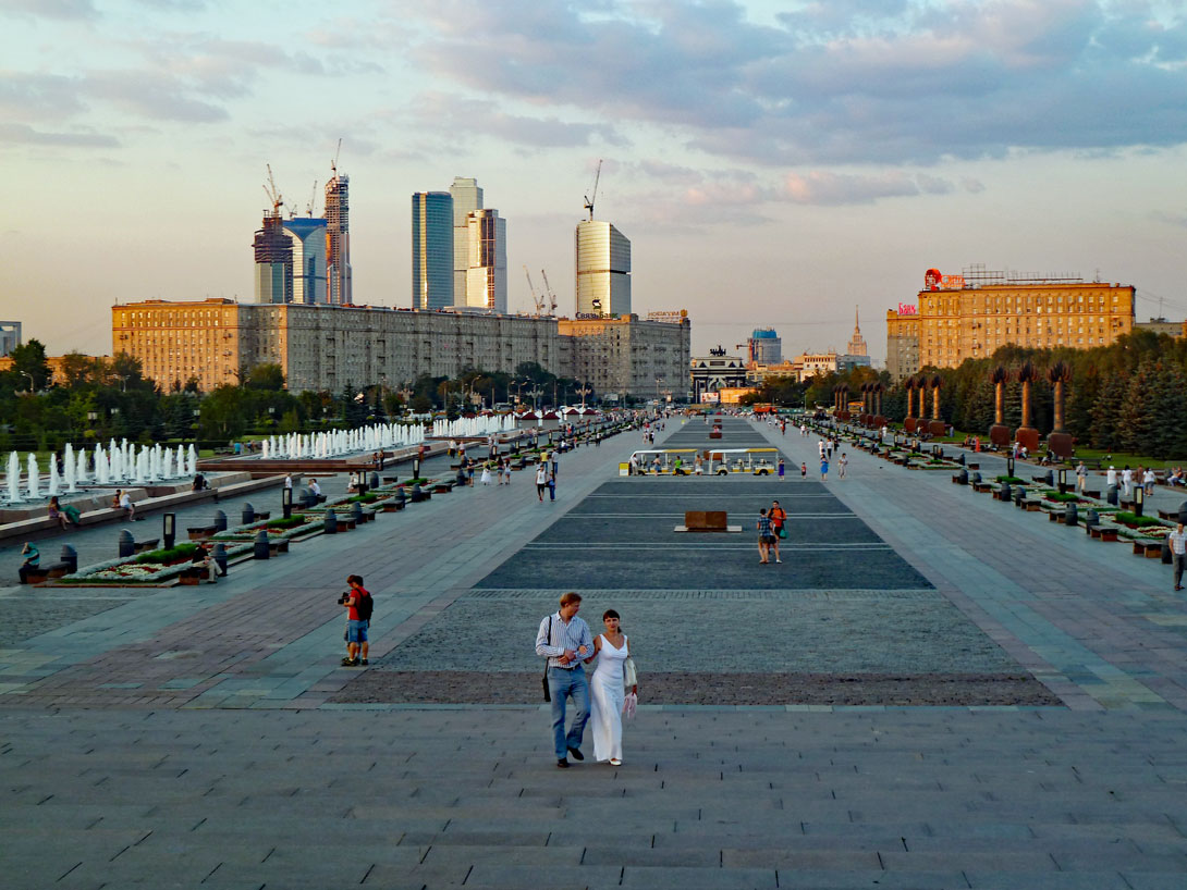 Der erste Fotostopp erfolgt auf dem Sperlingsberg, das ist die Stelle, von wo man den besten Blick auf die Lomonossow-Universität und das Olympiagelände hat. Allerdings ist man da noch ein großes Stück von der Innenstadt weg.