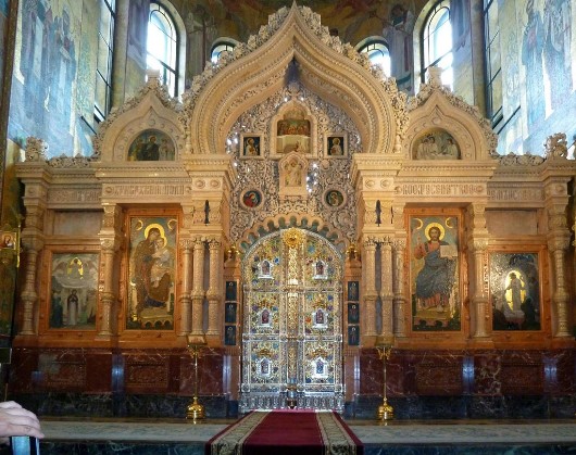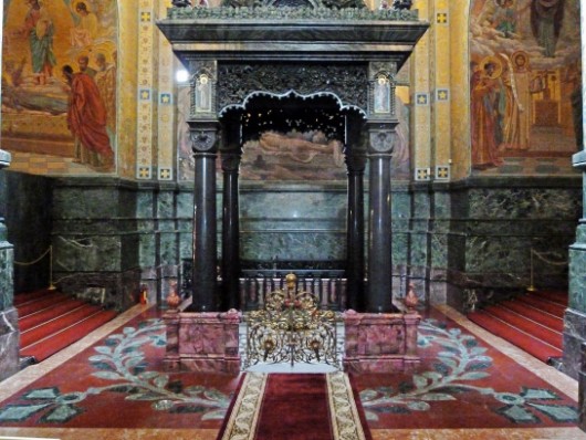 Als wir um 9:00 Uhr mit dem Bus in die Stadt fahren, ist nicht viel los auf den Straßen. Unser erster Besuch gilt der Auferstehungskirche, die auch Blutskirche genannt wird, weil sie auf der Stelle gebaut wurde, wo der Zar Alexander II. ermordet wurde.
