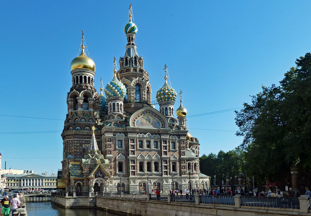Anschließend machen wir uns auf zur eigenen Erkundung von St. Petersburg. Mit der Metro fahren wir bis zum Newski-Prospekt und spazieren am Gribojedow-Kanal entlang zur Auferstehungskirche, die auch Blutskirche genannt wird, weil hier der Zar Alexander ermordet wurde.