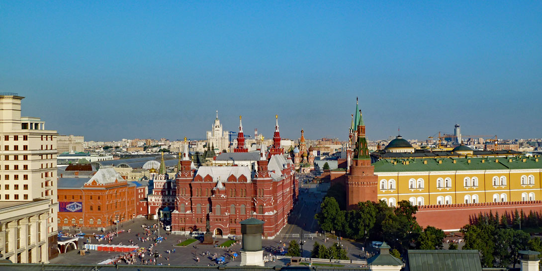 Blick von der Lounge im obersten Stock des Ritz-Carlton-Hotels Twerskaja auf den Roten Platz