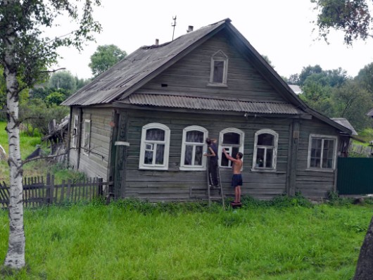 Alles sieht aus wie bei uns auf dem Land vor 60 Jahren. Alla erzählt viel über die Menschen auf dem Land und wie sie es schaffen, mit wenig Geld auszukommen. Sie schildert uns, dass alle Bauern eine zusätzliche Einnahmequelle brauchen, um zu überleben. Auch die anderen Leute, die auf dem Land leben, kommen mit dem, was sie monatlich verdienen (ca. 1800 Rubel = 450 €) , nicht aus, sondern brauchen einen Nebenverdienst. Es sieht überall so aus wie in den 50er Jahren bei uns. Eigentlich ist das erschreckend. Die Dörfer sehen ärmlich aus. Die Nebenstraßen sind nicht asphaltiert und die Holzhäuser erscheinen ziemlich mitgenommen. Einige Mietskasernen sind zwischendurch zu sehen. Je weiter wir noch Norden kommen, desto mehr bestimmen die LKWs die Straßen.