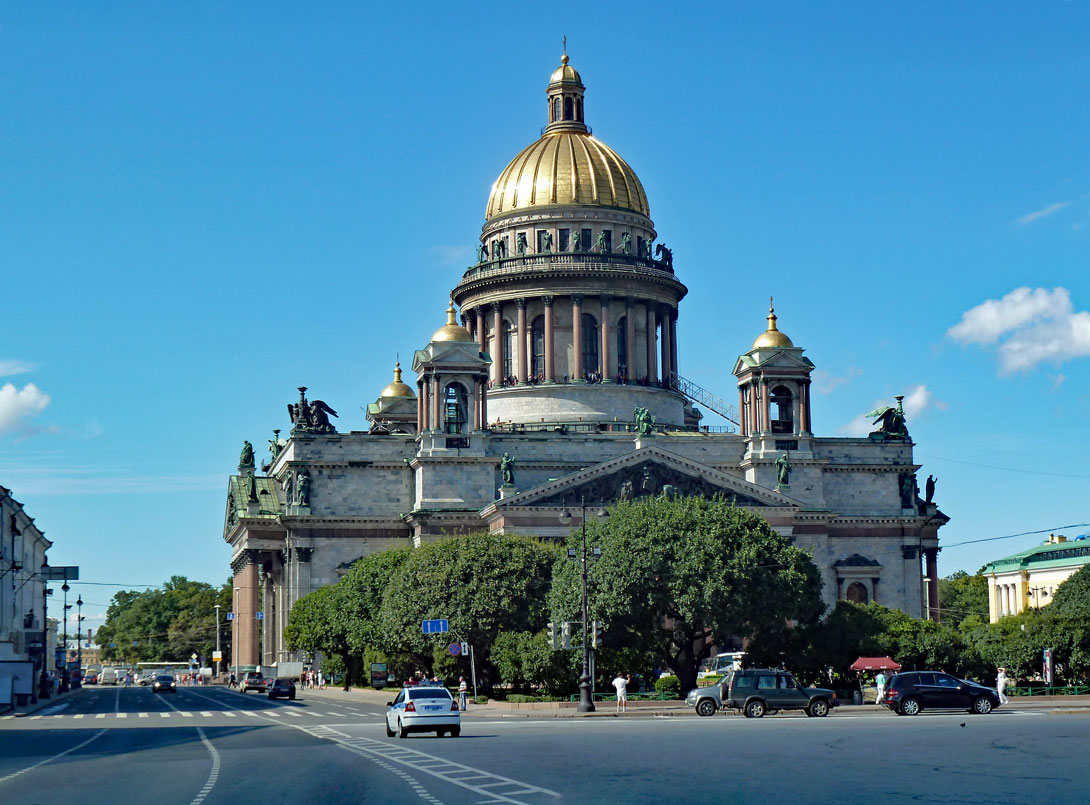 Im Anschluss an unsere Bootsfahrt besuchen wir weitere Highlights von St. Petersburg. Zunächst klettern wir die 192 Stufen der Isaak-Kathedrale zu den Kollonaden hinauf.