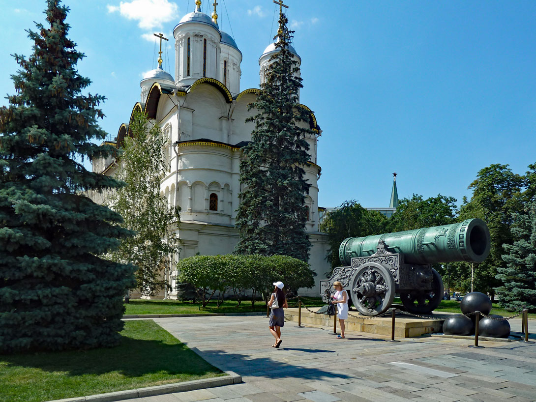 Leider durfte man nicht fotografieren, sodass ich nur ein versehentlich aufgenommenes Foto hier zeigen kann. Zum Schluss spazieren wir noch durch den Schlosspark. Bei allen Reiseführerinnen dieser Welt werden natürlich die größten und schönsten Bauwerke als einzigartig dargestellt So natürlich die größte Kanone der Welt: